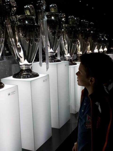 Почетак туре је са врха стадиона који прима 80 хиљада гледалаца. Коришћење камера и фотоапарата дозвољено је у сваком делу стадиона. После панорамског разгледања стадиона улази се у трофејну салу. Ту се на интерактивним екранима могу видети детаљи Реалових утакмица, историјат клуба, пехари, прве чланске карте, лопте, развојни пут клуба. Имена председника, тренера, фудбалера који су наступали за славни клуб. У трофејној сали налази се више од хиљаду пехара, од оних првих до најзначајнијих из Лиге шампиона по којима је Реал најпознатији и најтрофејнији клуб Старог континента.