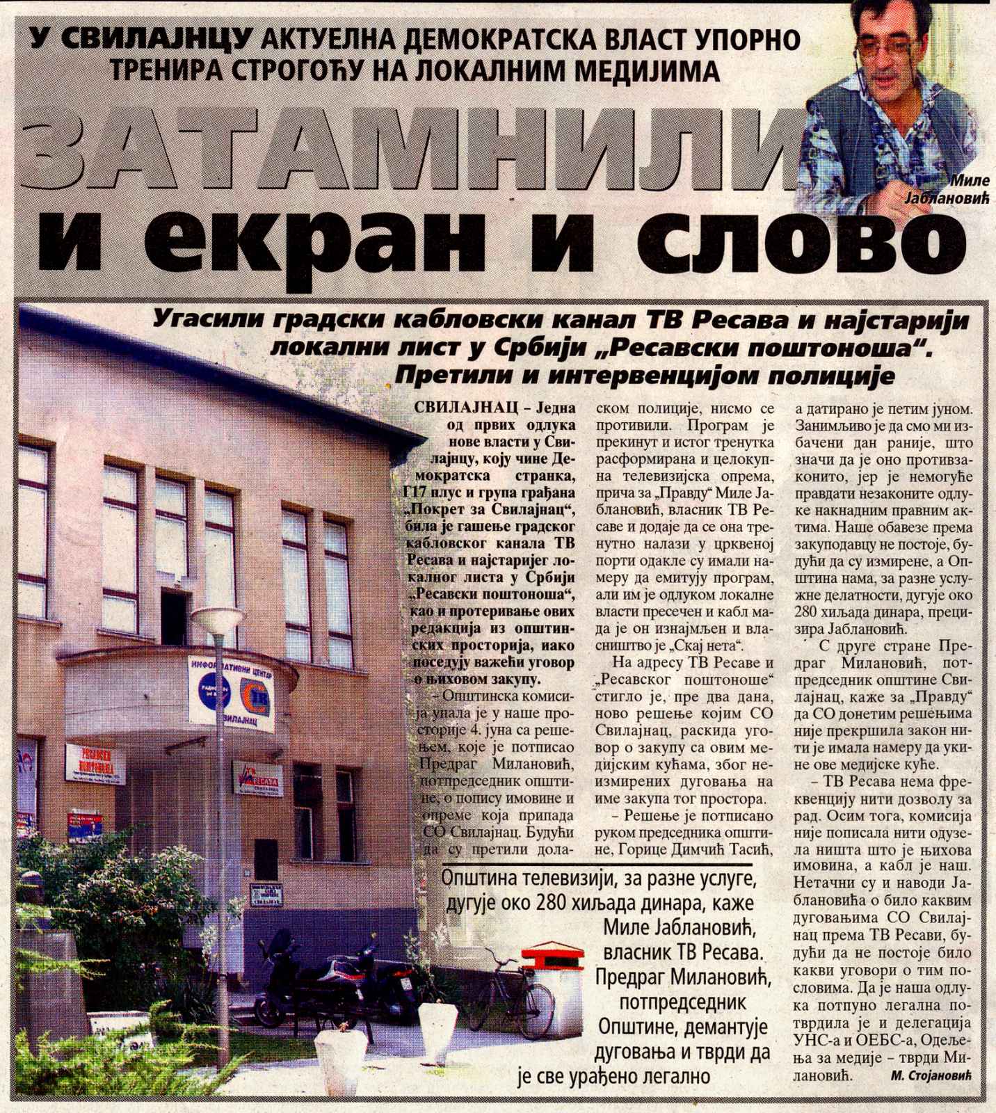 Гушење медија у Свилајнцу |