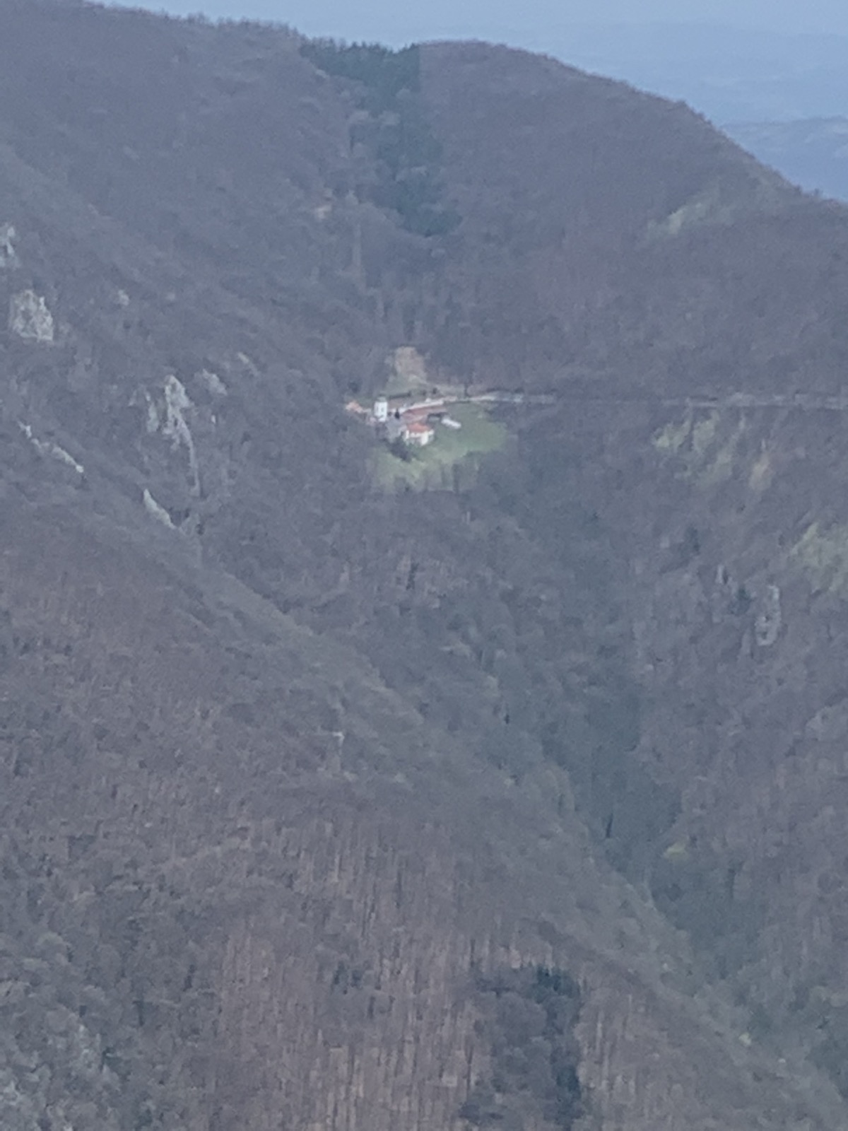 Поглед са видиковца.Овчар БањаЈедан од многоброхних манастира у шумовитом пределу.